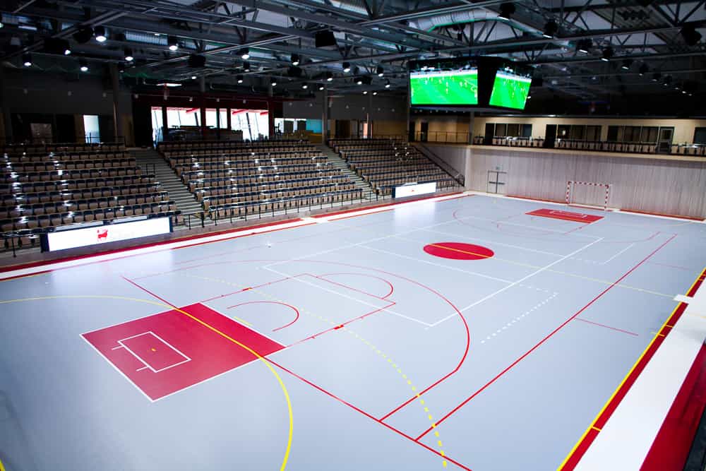 Spelplanen är 44×24 m och golvet har linjer för handboll, innebandy, basket och volleyboll. Totalt finns sex basketkorgar samt handbollsmål, innebandyrink, volleybollnät och dessutom ett godkänt trägolv för basketmatcher. Men arenan passar för flera idrotter till exempel futsal, fäktning, gymnastik med flera. Det finns åtta moderna omklädningsrum.